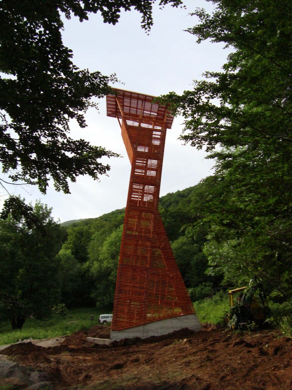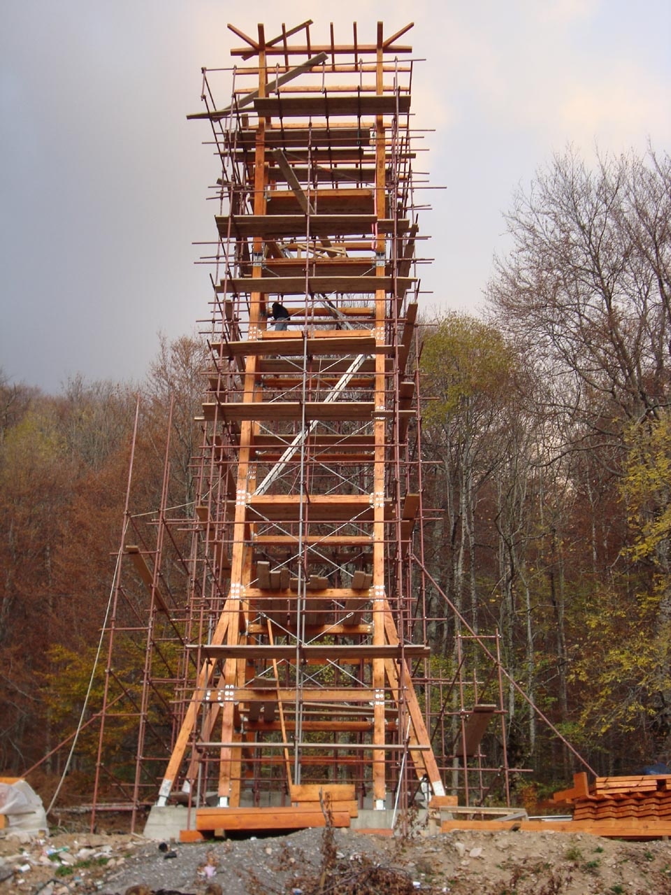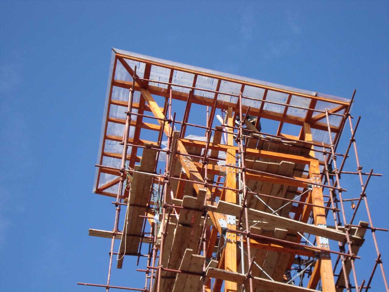 konstruktion: fachwerk aus stehern und querträgern aus bsh, diagonalstäbe aus rundstahl