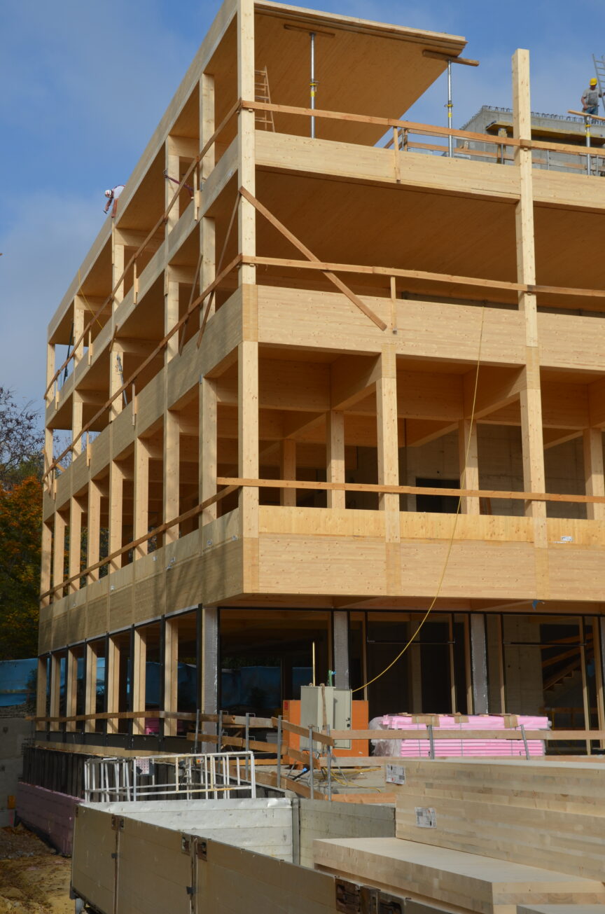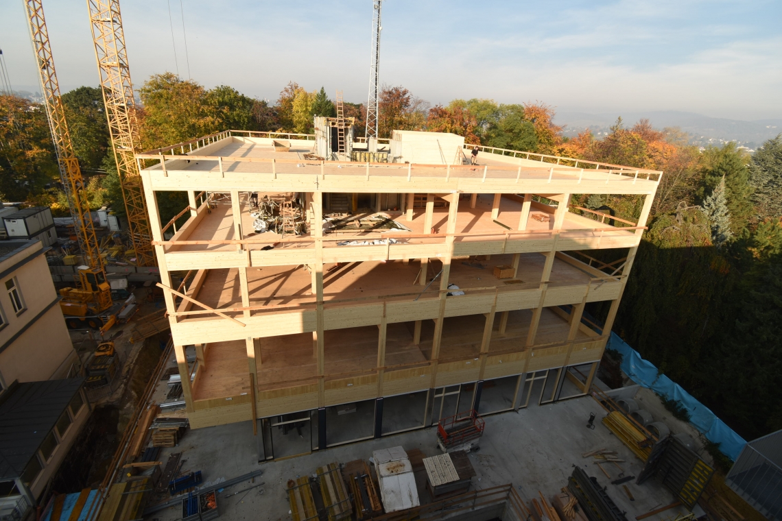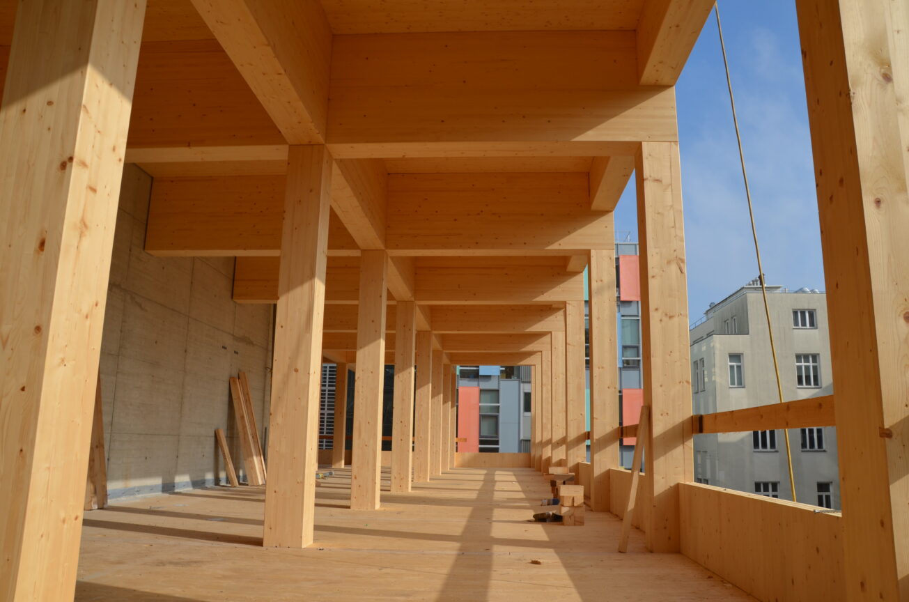 konstruktion: skelettbauweise, trägerrostkonstruktion mit bsp-decken, r90 sicht