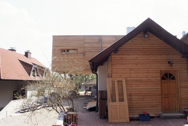 zubau eines zweigeschossigen mischbaus in hanglage mit auskragenden baukörper und terrasse