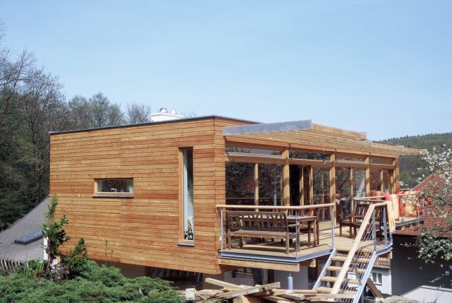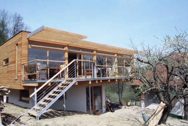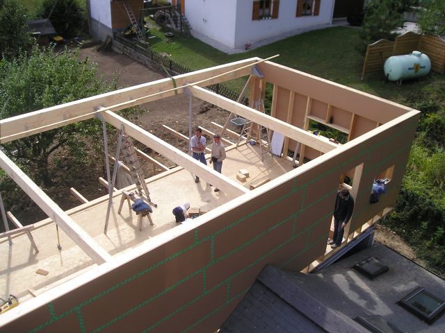 wände: holzrahmenbau vorgefertigt, südseitig skelettbau