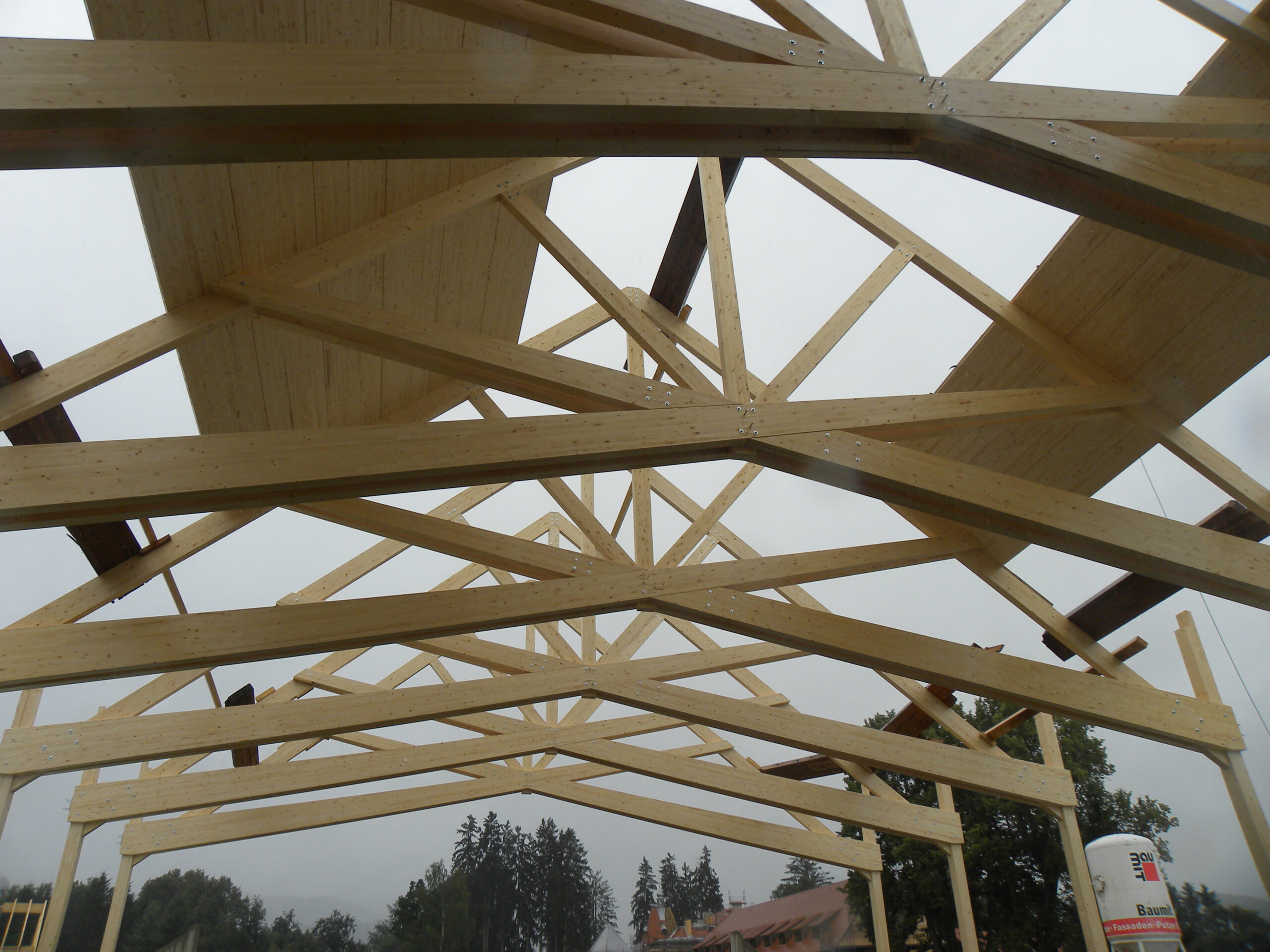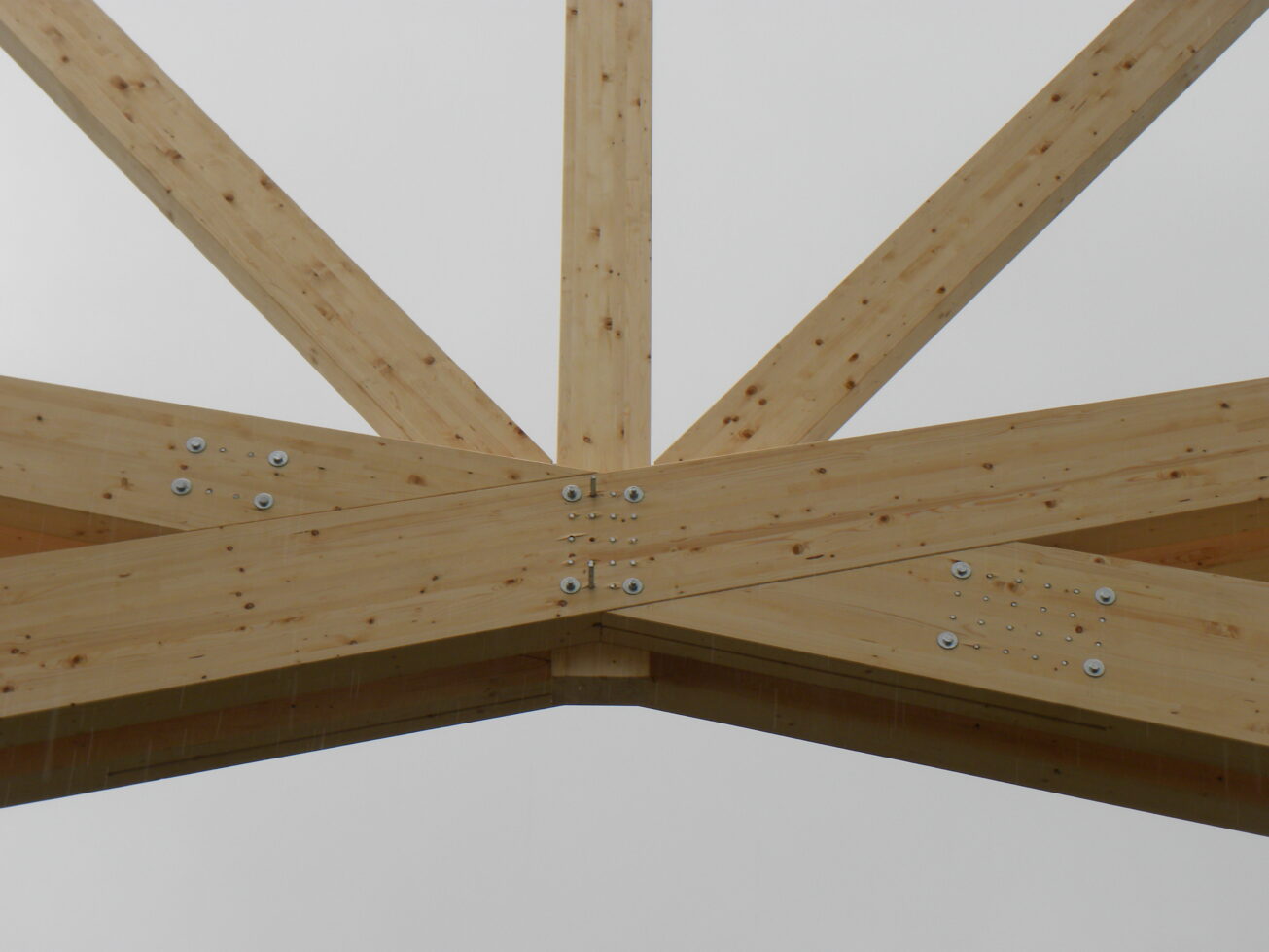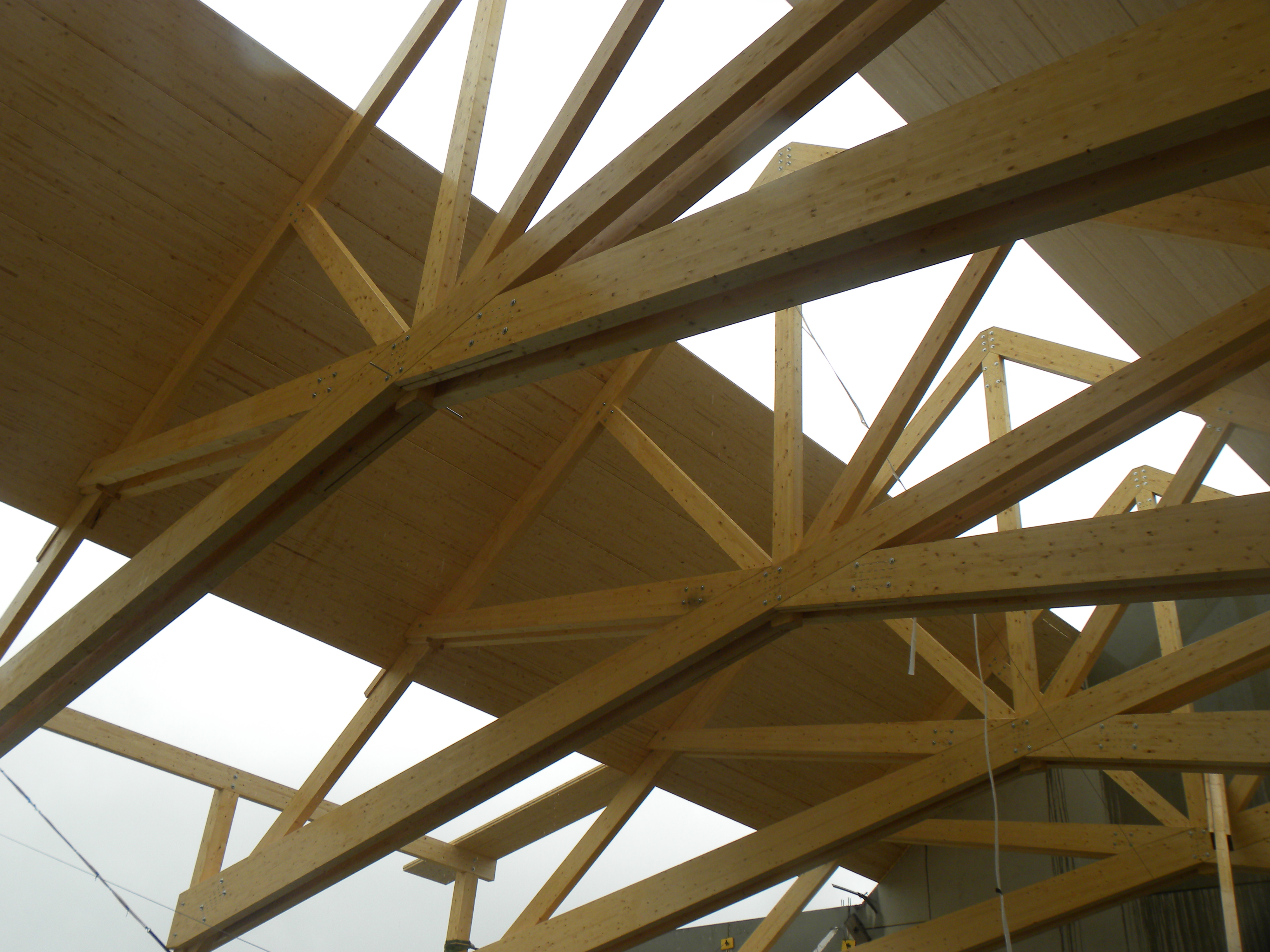 konstruktion: skelettkonstruktion, scherenartige fachwerkskonstruktion aus brettschichtholz