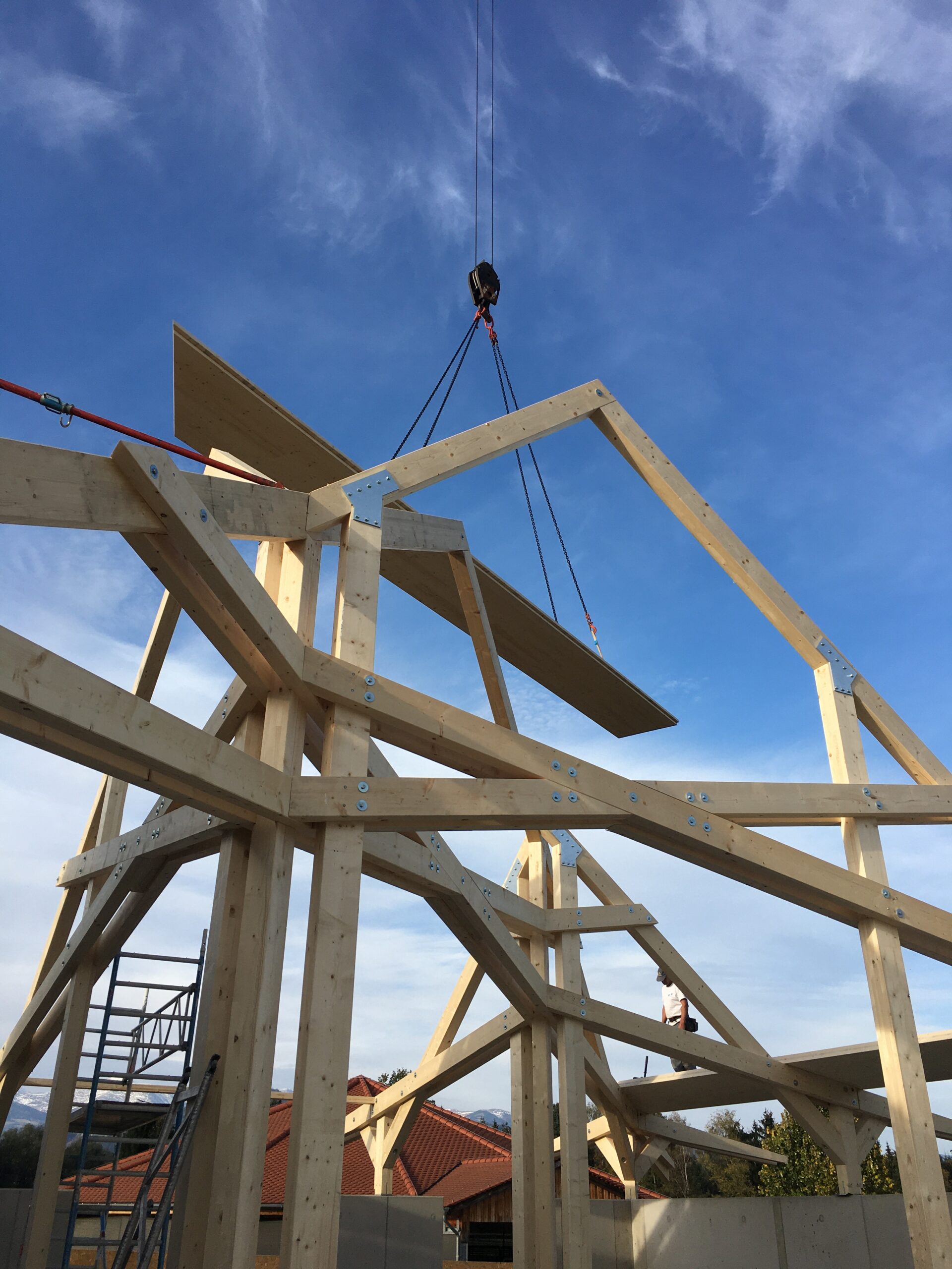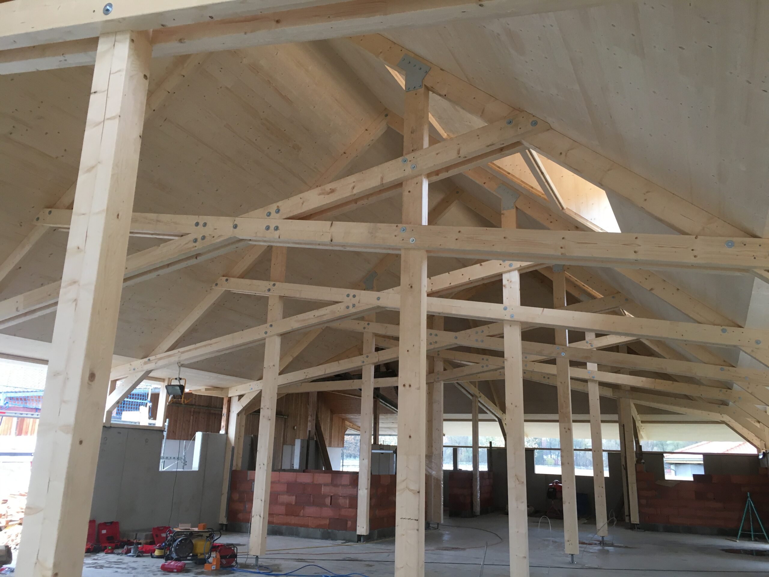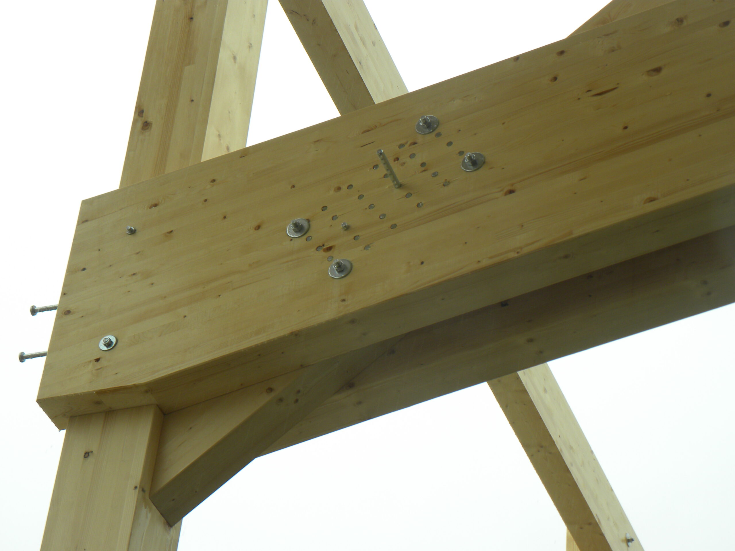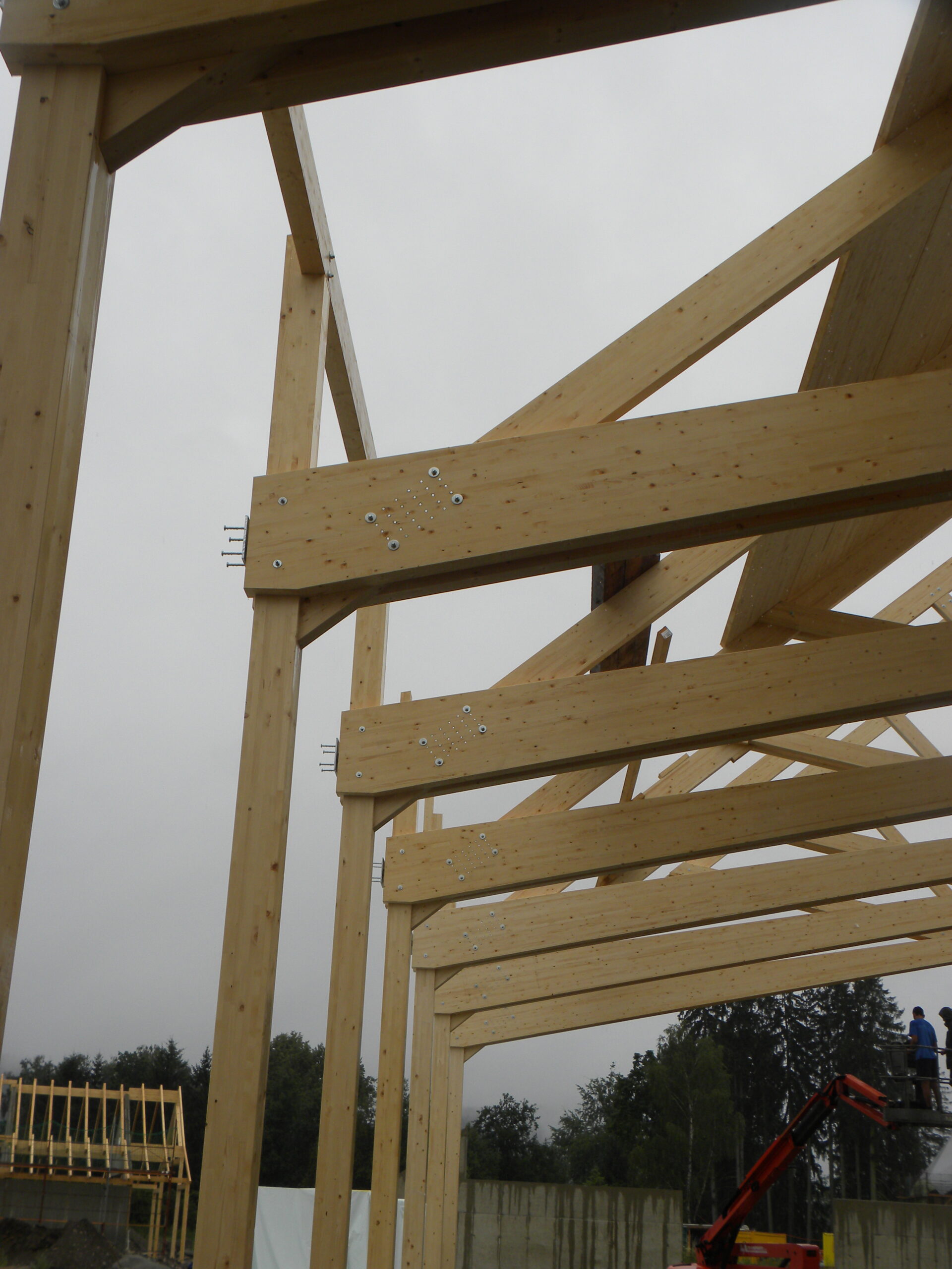konstruktion: skelettkonstruktion, scherenartige fachwerkskonstruktion aus brettschichtholz