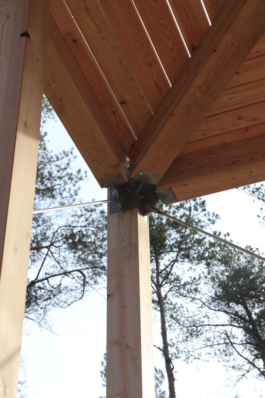 konstruktion: fachwerk aus stehern und querträgern aus bsh, diagonalstäbe aus rundstahl