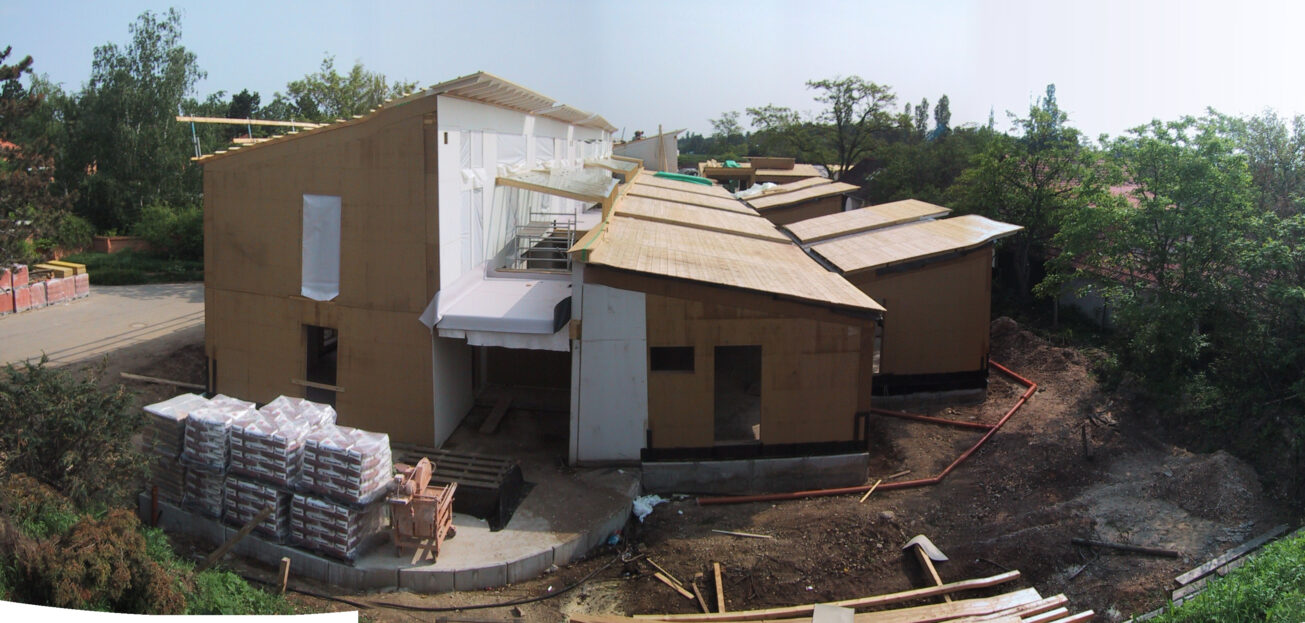 siedlung in holzbauweise, reihenhaustyp mit 38 wohneinheiten