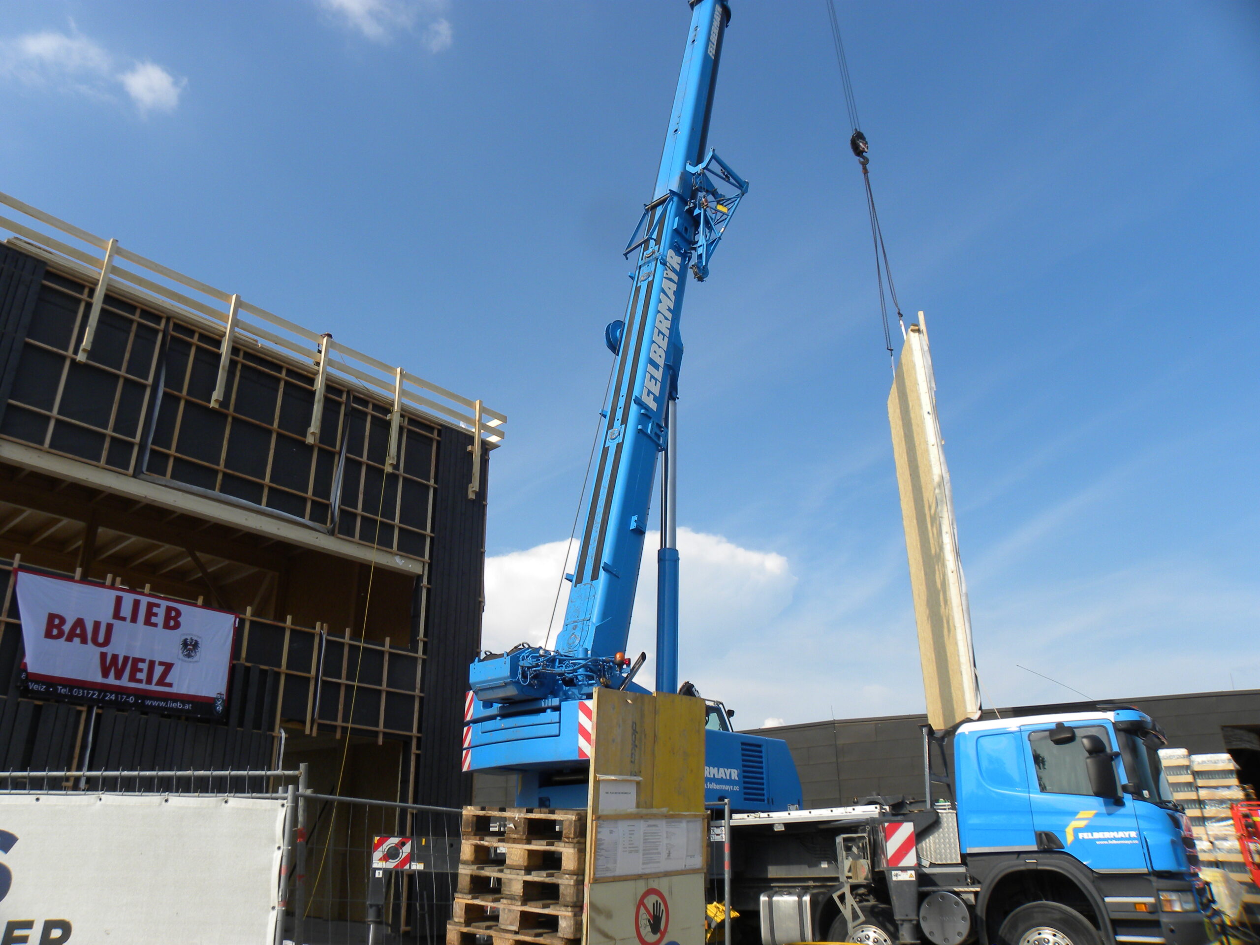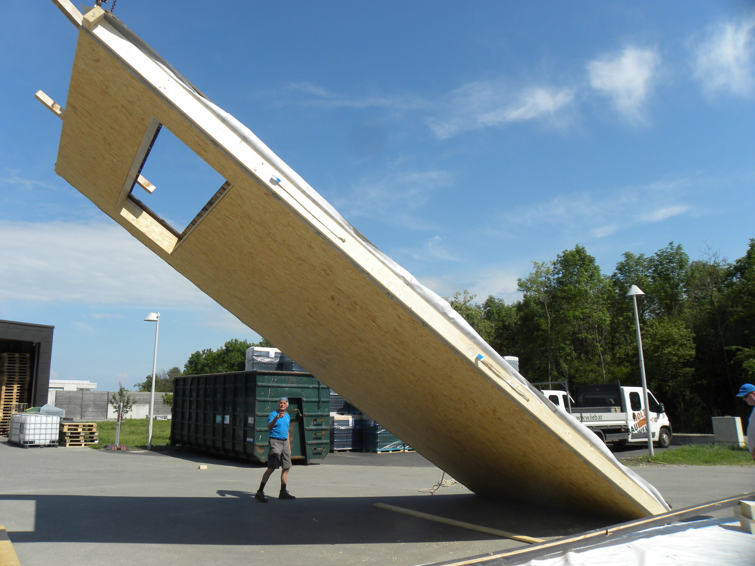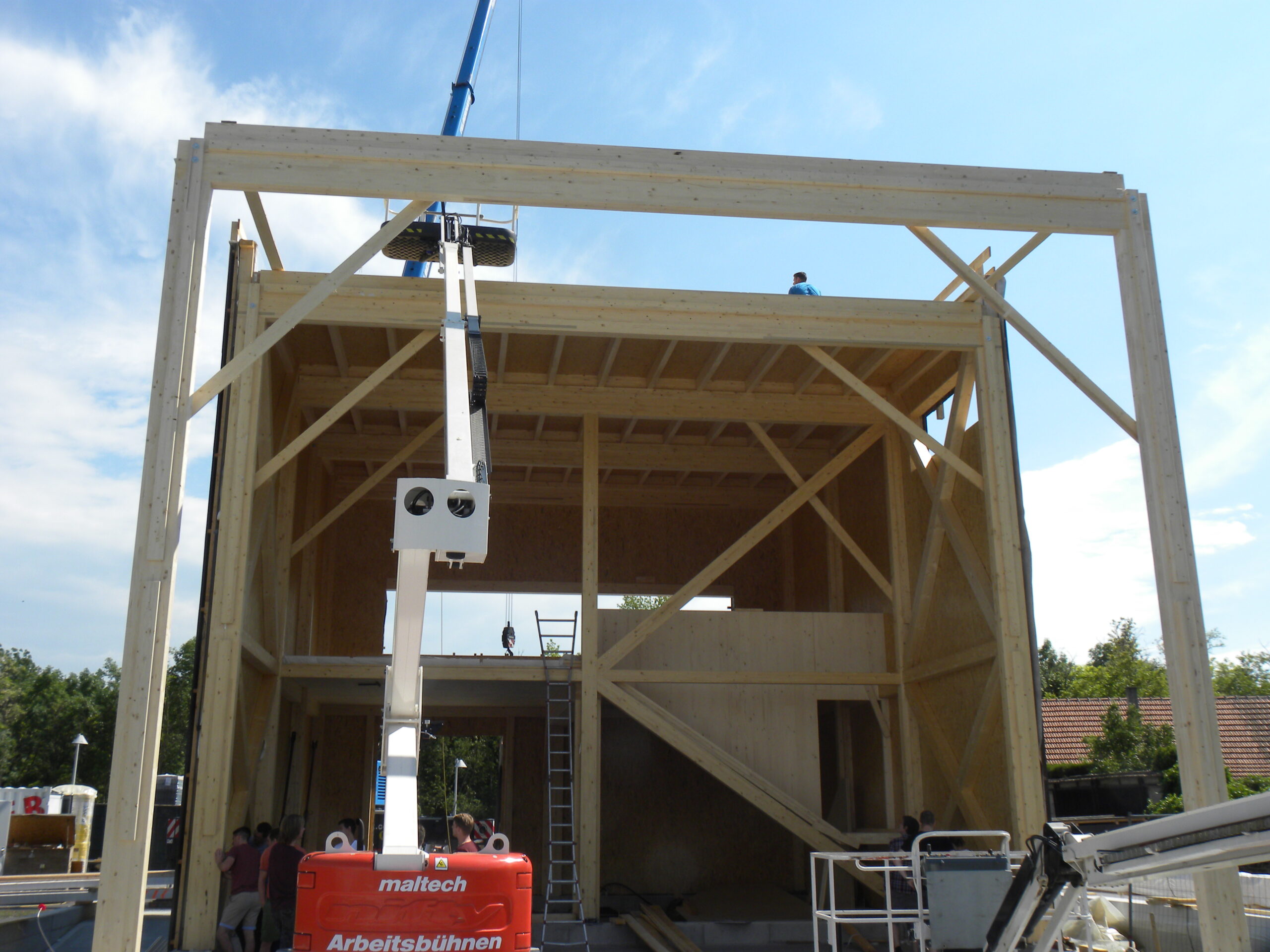 konstruktion: skelettbauweise mit vorgefertigten dach- und fassadenelementen